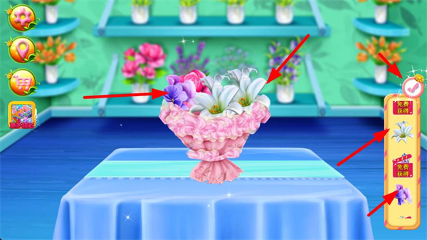 2、花藝訂單系統模擬真實花店運營,按客戶要求搭配花禮。好評累積可提升店鋪星級。
