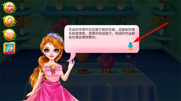 4、了解花朵還能制作香氛等物品,關閉提示后,可發揮創意制作更多花藝相關作品,完成后可在商店售賣。