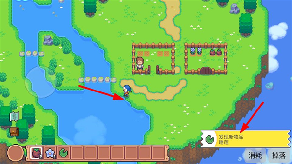 3、在場景里探索時會發現新物品,比如睡蓮,發現后該物品會進入背包,豐富可使用的資源種類。