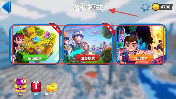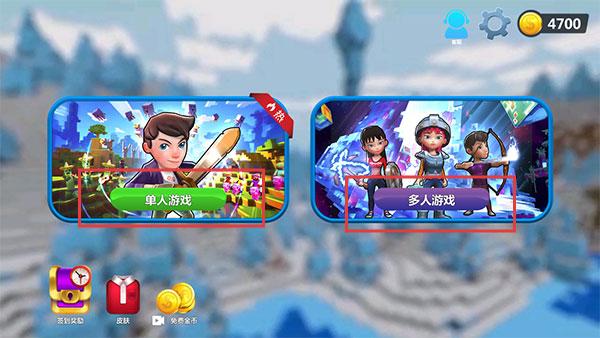 1、進入游戲后可選單人游戲或多人游戲,進入后在游戲模式界面,能選創造模式自由建造、生存模式采集生存、經典世界探索冒險,不同模式有獨特玩法。