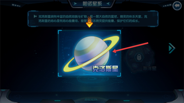 2、可選擇前往帕諾星系的克洛斯星,了解其有豐富自然資源,能為精靈提供能量,適合開展探索活動。
