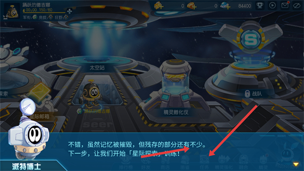 1、派特博士會引導你,即使記憶有損毀,也能開啟星際探索訓練,跟隨指引開啟在賽爾號的探索之旅。