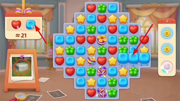 2、左側任務欄清晰標注當前關卡需要消除的方塊類型和數量,方便玩家掌握進度。