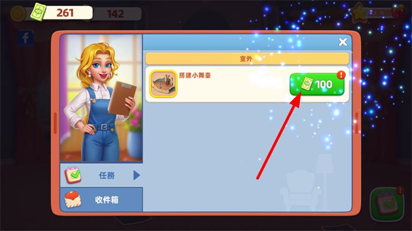 3、完成消除關卡后進入任務界面,找到對應的建造任務,點擊消耗對應的貨幣,即可開啟該建造項目的解鎖。