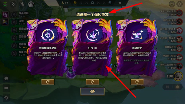 4、選擇強化符文,如打氣Ⅲ等,符文能提升棋子屬性或賦予特殊效果,合理選擇增強戰力。