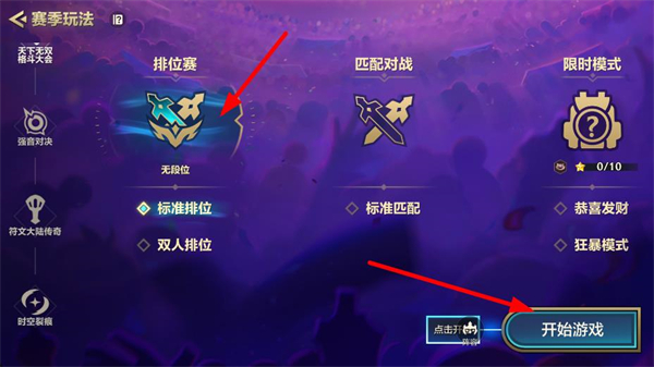 1、有排位賽等多種玩法,選擇排位賽后點擊開始游戲,參與對戰,提升段位,獲得獎品。