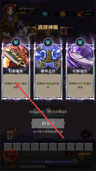 4、可選擇神賜技能,如幻影魔龍、魔導之力、幻影劍氣等,選擇合適的技能進行攻擊,增強戰斗能力。