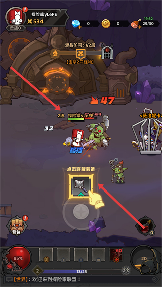 2、擊敗怪物可獲得裝備,點擊即可穿戴,提升自身戰力,同時還能觸發格擋等戰斗效果,助力冒險。