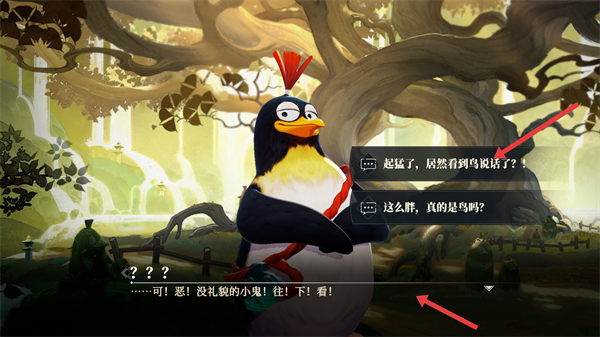 1、一開局會觸發劇情對話,與神鳥等角色互動,了解游戲背景,推進劇情發展。