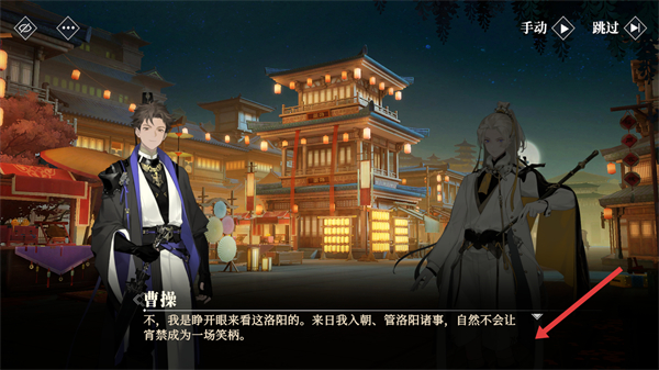 2、觸發劇情對話,與曹操等角色互動,了解游戲背景和劇情發展,對話結束后繼續推進游戲進程。