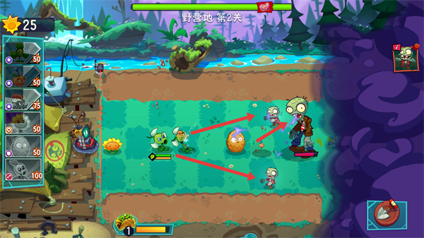 1、在關卡前期,可根據僵尸出現的類型和節奏,優先放置能增強基礎攻擊植物的薄荷,比如當普通僵尸較多時,使用爆薄薄荷強化豌豆射手,提升前期對僵尸的壓制力。