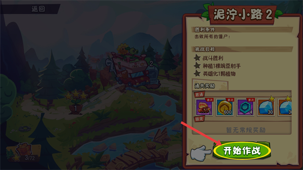 2、進入關卡前,能看到勝利條件和挑戰目標,還有通關獎勵,點擊開始作戰,即可進入戰斗場景。