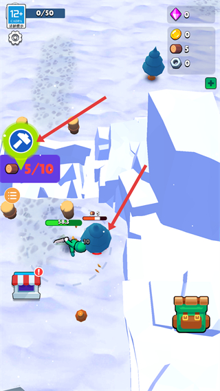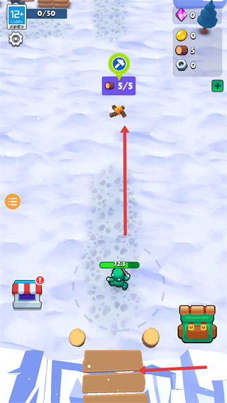 1、在雪地場景里,收集材料,完成指定的收集任務,為后續建造橋梁、營火等做準備。