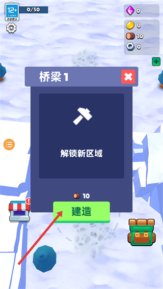 2、當材料收集足夠后,會出現橋梁建造提示,花費相應材料,點擊建造,解鎖新的區域,拓展可探索的范圍。
