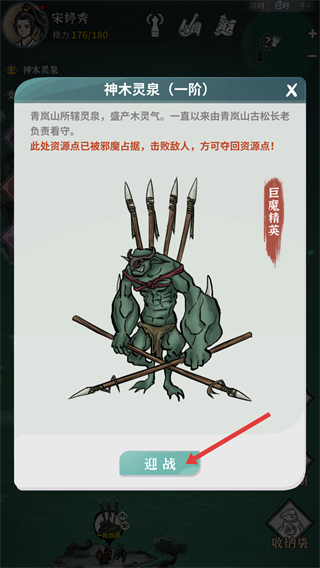4、可挑戰巨魔精英等強敵,點擊迎戰開啟戰斗,擊敗敵人可奪回資源點,提升角色實力,豐富修仙體驗。