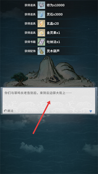 1、完成劇情可獲得修為、靈石等道具,道具助力修仙成長,推進角色在云邊驛等場景的冒險。