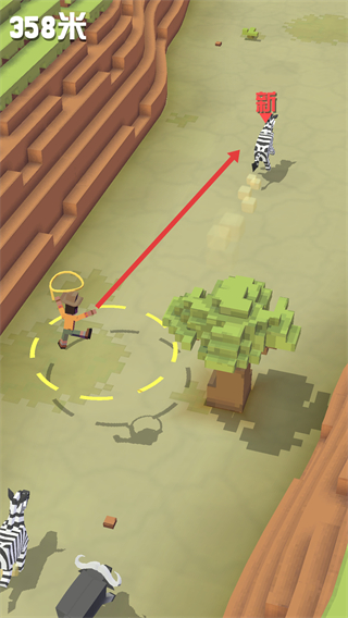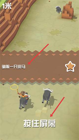 2、在場景里按住屏幕控制牛仔行動,目標是馴服斑馬等動物,按照提示操作,靠近動物,嘗試馴服。