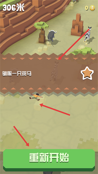 4、若馴服失敗,可點擊重新開始,再次嘗試馴服動物,繼續挑戰,直到成功馴服目標動物,推進游戲進程。