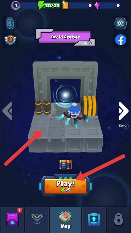 2、在飛船準備界面,能看到Droid Cruiser等標識,點擊Play按鈕,即可駕駛飛船進入戰斗場景。