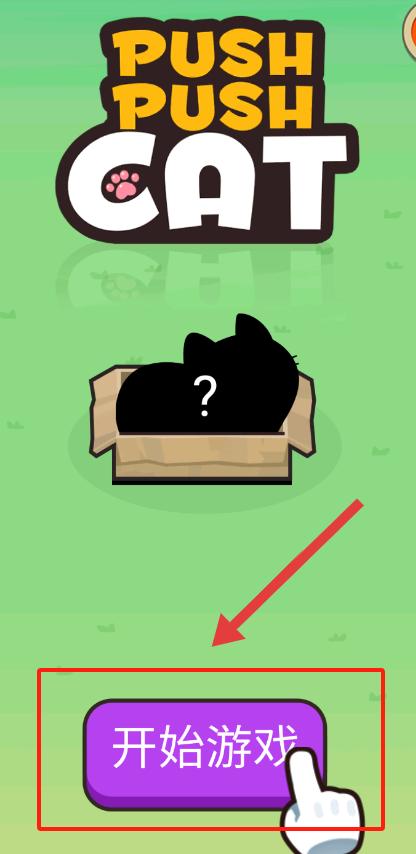 1、打開推推貓咪游戲,在初始界面點擊紫色的開始游戲按鈕,進入游戲關卡選擇或首關場景。