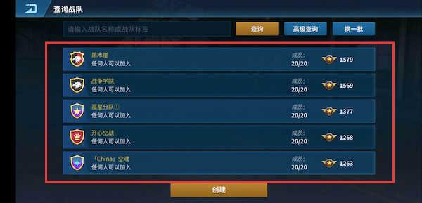 2、點擊主界面戰隊按鈕、搜索你喜歡的戰隊名稱點擊加入按鈕即可加入戰隊。