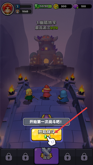 1、可選擇戰役關卡如幽暗地牢,點擊開始戰斗,開啟塔防挑戰,抵御敵人進攻,沖擊更高波次記錄。
