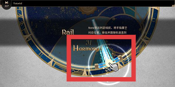 4、Rail操作:note到達判定線前將手指置于對應位置按住并跟隨軌道至結束,確保演奏流暢,帶來連貫的音樂體驗。