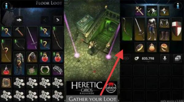 2、玩家在擊敗敵人后,出現Floor Loot界面,點擊箭頭處拾取裝備,豐富道具欄,提升角色戰力。