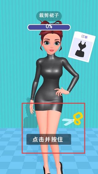 1、根據訂單指示,設計并裁剪服裝,點擊并按住。每個關卡的訂單需求都是不一樣的。