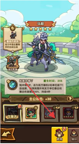 2、如下圖馬超,裝備上后如果在局內選擇了招募重騎兵,那么馬超就會隨著重騎兵一起沖上去。