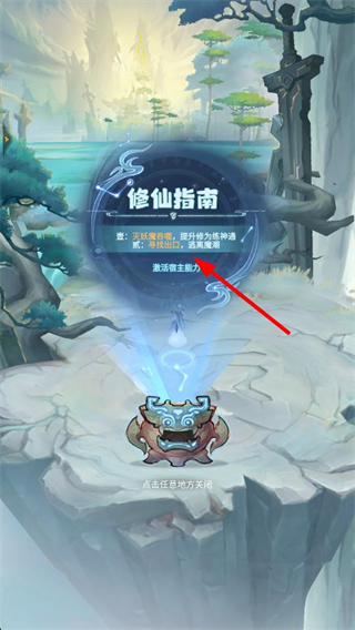 2、查看修仙指南,了解滅妖魔、尋出口的修仙目標,激活宿主能力,推進修仙劇情,提升角色的修仙認知。