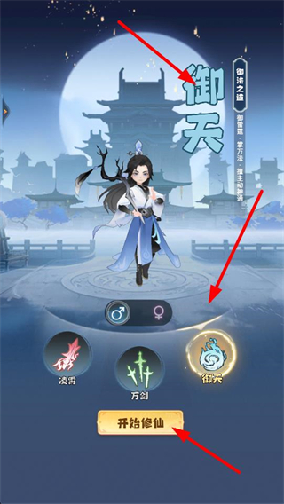 1、選擇御天職業,點擊開始修仙,開啟御天修仙的冒險之旅,利用御天的御法之道,為后續修仙戰斗做好準備。