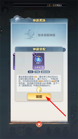 3、裝配御雷真訣等神通,提升角色的雷電傷害和暴擊率,增強修仙者的戰斗能力,為對抗修仙敵人提供助力。