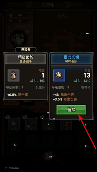 2、替換重力光鏡等稀有裝備,提升攻擊和暴擊傷害等屬性,優化角色戰力,為冒險戰斗提供更強支持。