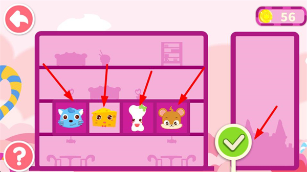 3、根據萌物的居住規則,將對應萌物放到架子的指定區域,確保適配的萌物相鄰擺放,完成布局后點擊綠色對勾,積累金幣。