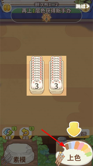 2、手辦制作步驟:點擊素模將手辦部件填充到盒子中,填充滿后進行上色操作,素模上色后變成棕色,依次將模型挪到盒子中,繼續點擊素模放入部件,最終合成目標顏色。