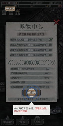 3、玩家點擊進行清理按鈕,然后在清理成功后,可以進行探索。