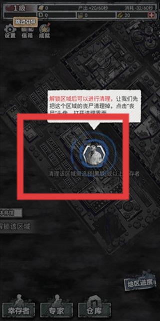 2、解鎖區域后可以進行清理,讓我們先把這個區域的喪尸清理掉,點擊喪尸頭像,打開清理界面