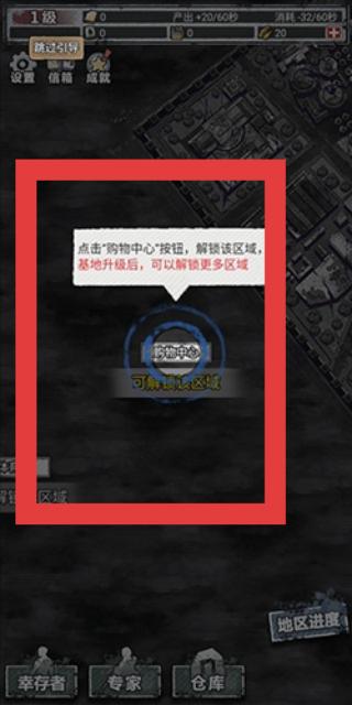 1、玩家下載后,點擊購物中心按鈕,解鎖該區域,基地升級后,可以解鎖更多區域。