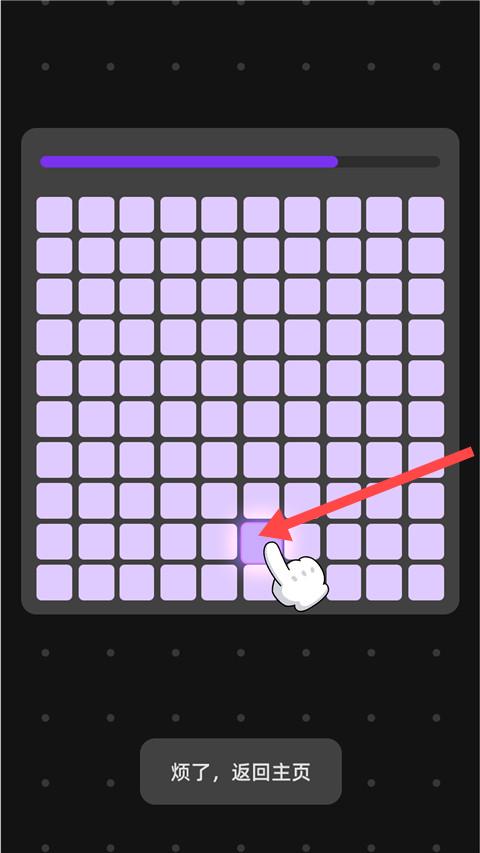 2、找不同紫色方塊矩陣,多數方塊色調統一,唯獨中間深色方塊暗藏其中,手指指引提示點擊位置,簡單畫面考驗視覺辨識度。