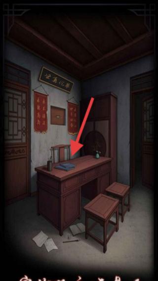 3、當玩家探索房間如書房,需要點擊箭頭指向區域書桌,搜尋道具文件、鑰匙,推進恐怖解謎流程。