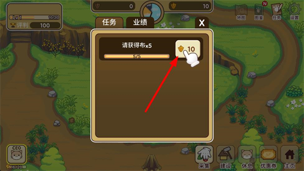 1、查看任務界面,完成獲得布的任務后,點擊對應區域領取任務獎勵,積累資源的同時推進任務進度,解鎖更多家園玩法。