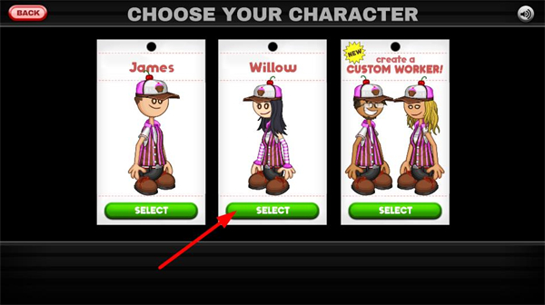 1、先看到角色選擇界面,有JamesWillow及自定義工人選項,點擊對應角色下方的SELECT按鈕,即可選定角色開啟游戲。
