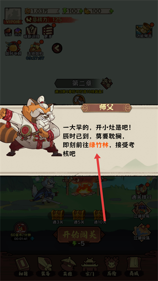 3、完成章節后,師父會發布前往綠竹林接受考核的任務,按照提示前往新的場景,開啟新的冒險。
