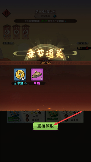 2、章節通關后可獲得倍串金幣、草帽等獎勵,點擊直接領取,獲取獎勵提升自身實力。