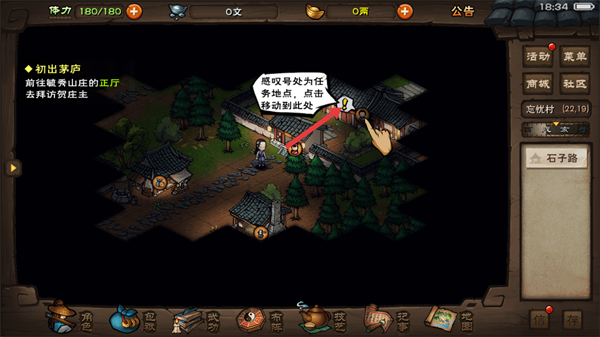 1、可根據提示前往任務地點,如魏山莊正廳,點擊感嘆號觸發任務,推進江湖冒險進程。