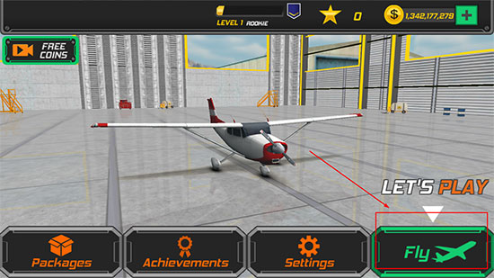 2、接受任務后回到飛機界面,點擊Fly進入飛行場景,操控飛機完成起飛、尋星等指定操作。