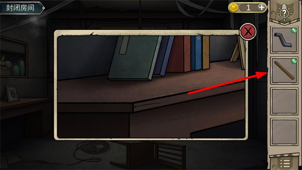 2、可在房間內收集如木棍的物品,將其放入右側物品欄,這些物品可用于后續解謎操作。