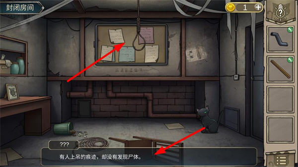 3、探索房間時會發現有人上吊的痕跡卻無尸體的線索,同時可查看布告欄上的紙張,挖掘房間背后的故事。