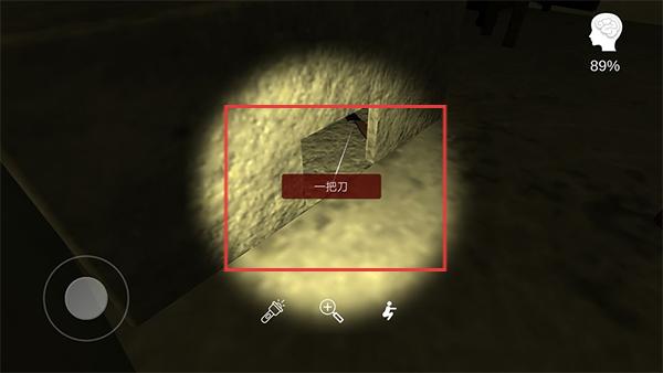 2、繼續沿場景推進,在石墻凹陷處,光照聚焦一把刀,交互拾取,獲取新道具,可用于后續解謎,同時腦力值因線索更新提升。